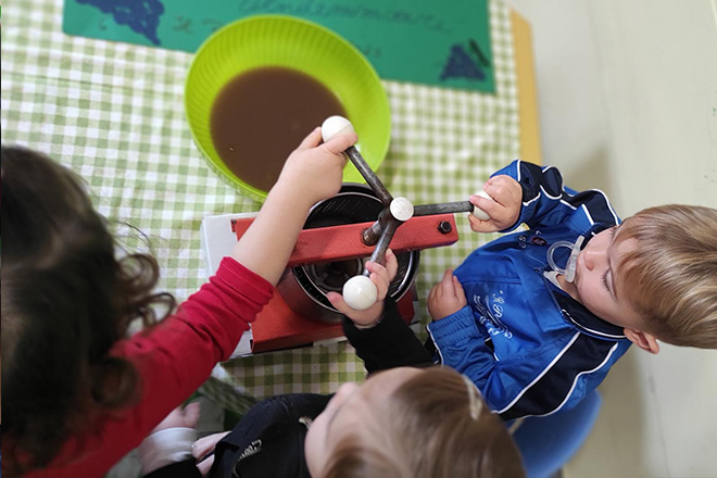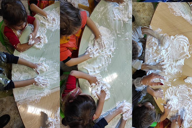 Le nostre attività di sviluppo sensoriale: i piccoli della sezione primavera. Attività manipolative.
